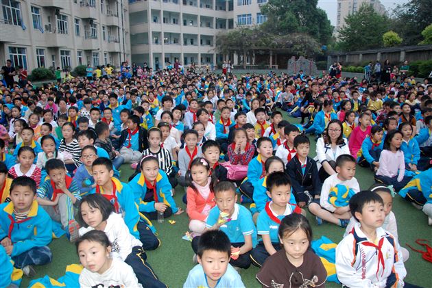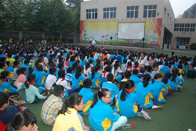 2015年4月1日晚上,棠外附小组织全体师生在后草坪观看了 “坝坝电影”。电影播放前,德育处就全校教师的组织分工做了细致的安排,在大队部、体育组教师的指挥下,各班学生有序入场。大队辅导员郭飞老师强调了观影中的纪律、安全等要求,鼓励同学们文明观看、认真写好观后感。