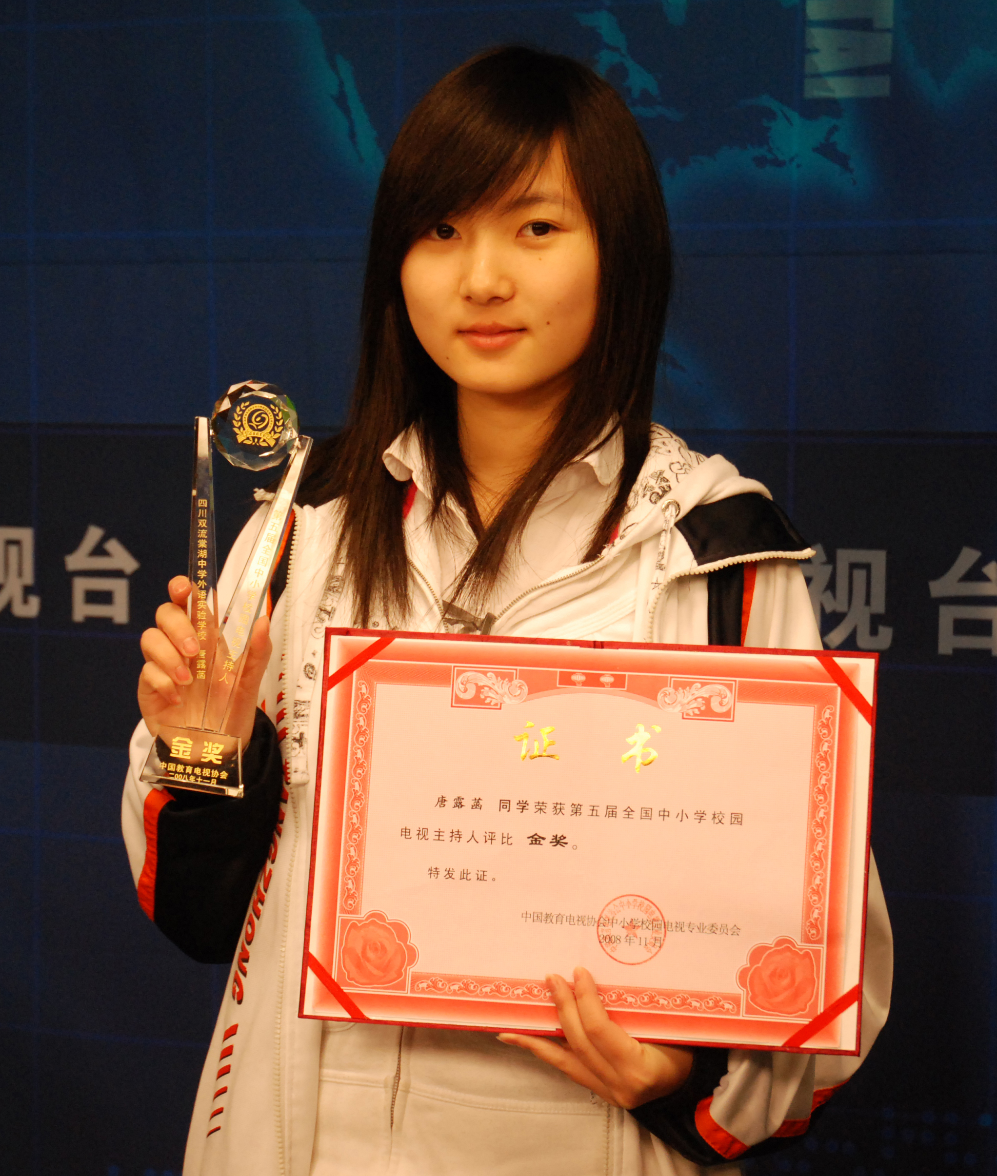 2008年第五届全国中小学电视大赛颁奖晚会,唐露菡同学被邀请为主持,与江西省电视台主持人同台主持颁奖晚会。