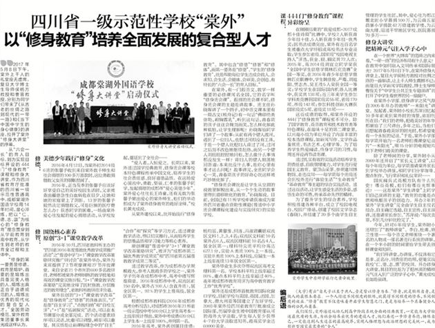 【华西都市报】四川省一级示范性学校“棠外”以“修身教育”培养全面发展的复合型人才