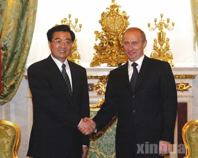 普京对胡锦涛说,您就任中国国家主席后,选择俄罗斯作为第一个出访的国家,使俄罗斯人民深感荣幸。通过这次访问,我们既可认真总结近年来双边关系的发展历程和取得的成果,也有机会对今后两国友好关系的发展制定中长期规划。俄罗斯领导人都高度重视发展两国友好合作关系。我深信,这次访问必将作为一个重要的里程碑,载入俄中人民友好交往的史册。