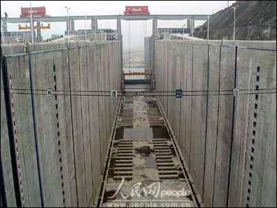 船闸闸室:三峡共有10个闸室,每个闸室有效长度280米,净宽34米,可过万吨级船队,年单向通航能力5000万吨。