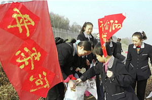 目前,黄河兰州段正遭受着生活污水、工业废水、生活垃圾在内的多种污染,兰州每天产生60万吨工业废水和生活污水,其中约40万吨在未经任何处理的情况下通过七个规模较大的污水排放口直排黄河,给黄河水体造成比较严重的污染。让母亲河远离污染困扰,已刻不容缓。图为兰州的中学生正在黄河边清除白色垃圾,呼吁保护母亲河。新华社记者韩传号摄(传真照片)