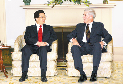 九月四日晚,国家主席胡锦涛在堪培拉会见澳大利亚总督杰弗里。