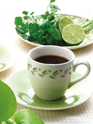 鲜薄荷叶10余片,甘草5g,绿茶5g,太子参10g,开水500ml。按此比例,冲泡10余分钟后,滤去其渣,加白糖适量,调匀饮服。有解热消暑,清凉解毒、发汗解表之功;对头痛目赤,咽喉肿痛、风热感冒等症,疗效甚佳。