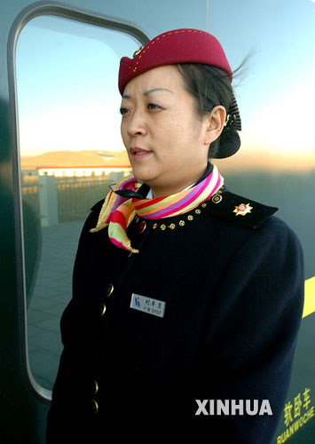 全线通车后的青藏铁路迎来第一个冬季,青藏铁路的列车员穿上了保暖而不失亮丽的冬装。