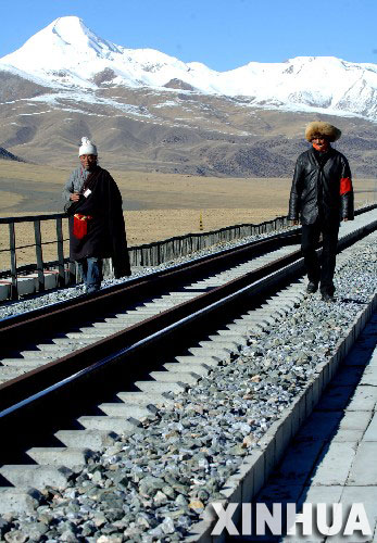 青藏铁路沿线的农牧民护路人员克服困难,加强铁路沿线的巡逻,以保证青藏铁路运行安全。