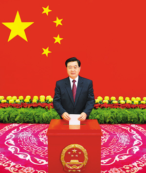 11月8日,中共中央总书记、国家主席、中央军委主席胡锦涛在北京市西城区中南海选区怀仁堂投票站投票,选举西城区第十四届人民代表大会代表。