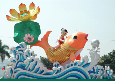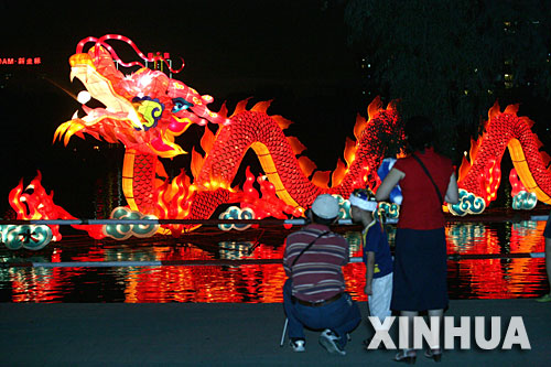 “龙潭映月”――首届北京龙潭公园国庆中秋大型赏灯游园会正式向游人开放。