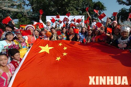 9月29日,首都各民族代表相聚在中华民族园的榕树广场,举行“迎奥运、 迎国庆、迎中秋56个民族大团圆”活动。