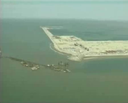 当记者爬上这座距离海平面有40多米的塔吊之后,很难相信,身后的这个地方,就是地图上的那个曹妃甸。因为在唐山人的语言中,曹妃甸的这个“甸”,意思就是海中的小沙岛。但现在我们看到,原本只有4平方公里曹妃甸,通过填海造地已经扩大到了15平方公里。而在曹妃甸的蓝图中,这里填海造地的面积将达到310平方公里,相当于她的母城唐山市城区面积的3倍还要多。