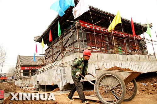 3月14日,林州千年古寺慈源寺古建筑搬迁的准备工作正在加紧进行。
