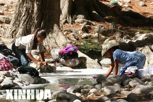 3月13日,在墨西哥的普埃布拉州的偏远地区,两名女孩在溪水边洗衣服。女孩所在的夏夏马约村正面临着严重的缺水危机,村里的儿童常常要走到5公里以外的地方才能取到水。第4届“世界水资源论坛”会议于3月16日在墨西哥召开。根据联合国最新公布的报告,全球很多地方正在面临水资源匮乏的危机,而水资源开发与管理不善是导致这一危机的重要原因。
