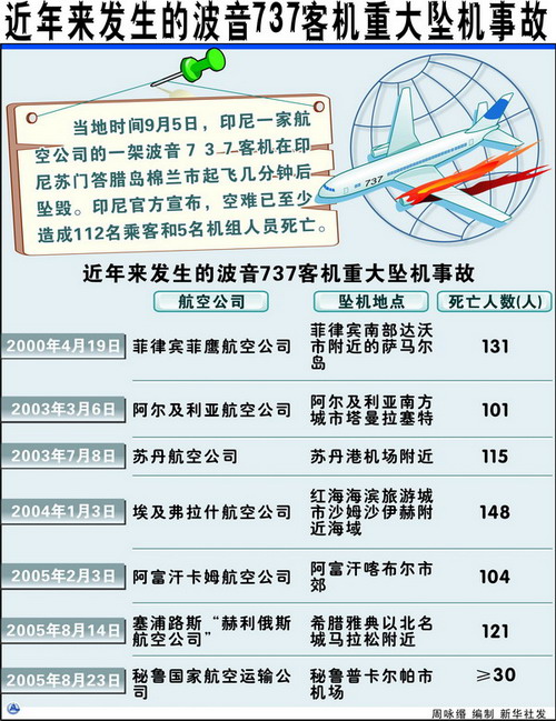 这架属于印尼曼达拉航空公司的波音737-200型客机载有112名乘客和5名机组成员,只有15人幸免于难。据航空公司发言人说,飞机起飞失败酿成空难,但目前尚无法确定是天气还是技术原因导致起飞失败。印尼交通部长拉查萨对新闻界说,这是过去五年中印尼最严重的空难。据悉,搭乘这架飞机的北苏门答腊省现任省长努尔丁和前任省长斯拉戈尔也不幸遇难。
