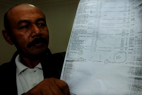 9月5日,一名印尼棉兰市博罗尼亚机场的工作人员向记者展示坠毁飞机的乘客名单,其中包括两名中国籍乘客。当天,一架印度尼西亚曼德拉航空公司客机在北苏门答腊省首府棉兰市区坠毁,目前已经造成149死亡。