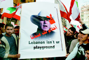 示威者打出标语:布什,黎巴嫩不是你的操场。