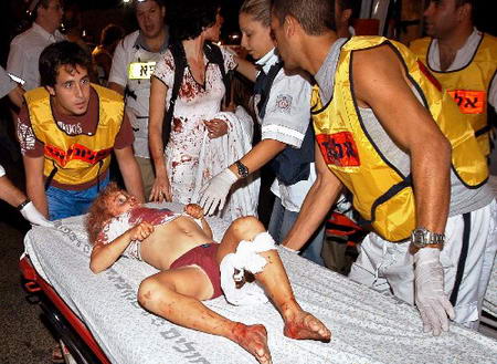 10月7日,在埃及红海边境小城塔巴,一名在爆炸中受伤的以色列女孩被救援人员送往医院。当天晚上,塔巴的希尔顿饭店发生爆炸,部分建筑坍塌。埃及电视台称爆炸是煤气泄漏所致。但以色列媒体称爆炸是汽车炸弹造成的。新华社/法新