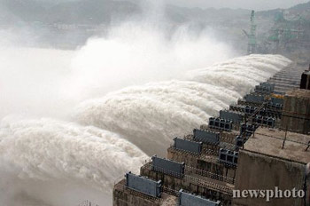 这是2004年6月17日,大坝泄洪的壮观情景。
