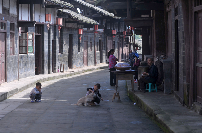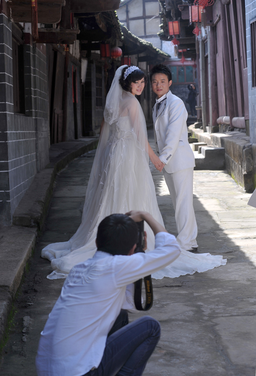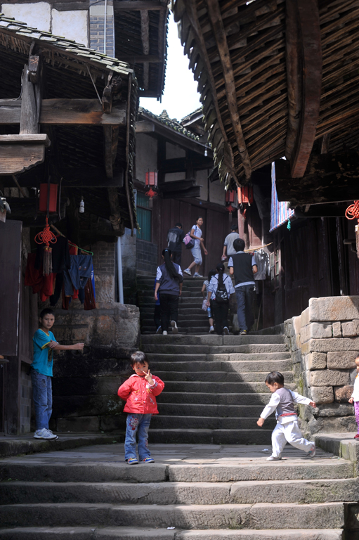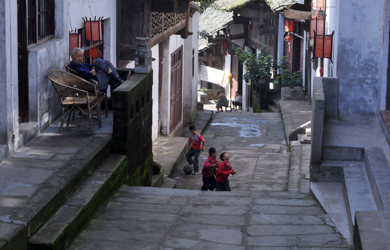 转了几条街,我们发现:在街边坐着的是一些当地的老年人、玩耍的是一些学生和小孩子、街上行走的是外来观光者,见到的当地年轻人,也是三对在此拍婚纱的情侣,看来大部分中青年人已到外地去寻找精彩的世界,把这古镇交给留守在这里的老人和小孩们看管了。
