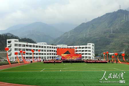 2010年10月29日, 全国党员代表在汶川县七一映秀中学实地查看“特殊党费”援建项目,并出席七一映秀中学竣工典礼。校园内。(人民网记者 关腾飞 拍摄)