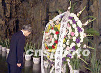 小泉随花圈缓缓走到雕像前,鞠躬、默哀。