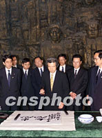 参观完毕,小泉提笔写下“忠恕”二字。据他本人介绍,这两个字源出中国《论语》。“忠”者,诚心诚意; “恕”者,充分尊重对方感情。