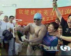 张健此次只身横渡英吉利海峡也引起了当地媒体的极大关注,在横渡过程中,始终有直升机在上空进行跟踪拍摄,很多当地的华人和从国内专门赶来为张健加油鼓劲的人在岸边和登陆地点焦急的等待张健的成功登陆。