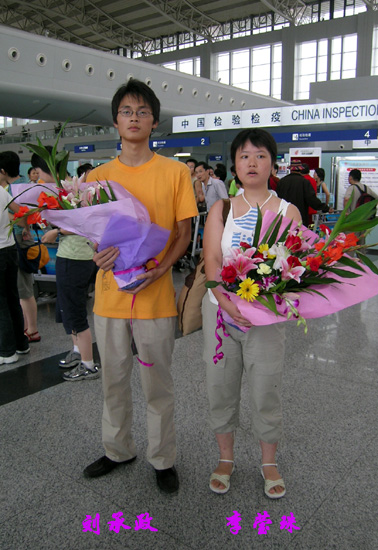 刘承政、李莹珠同学2005年7月18日将飞赴新加坡开始新的学习生活。