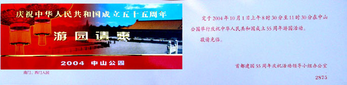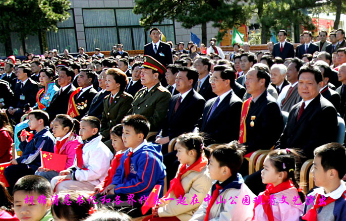 2004年10月1日,黄光成校长(二排右八)应中共中央国务院邀请在中山公园参加中华人民共和国成立55周年游园活动。