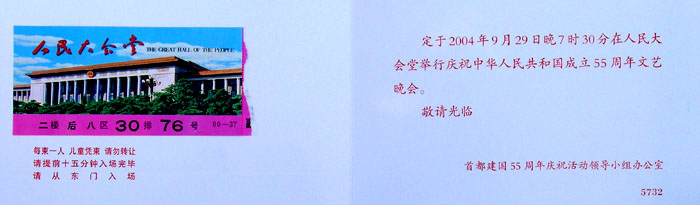 2004年9月29日,黄光成校长受邀参加庆祝中华人民共和国成立55周年文艺晚会。