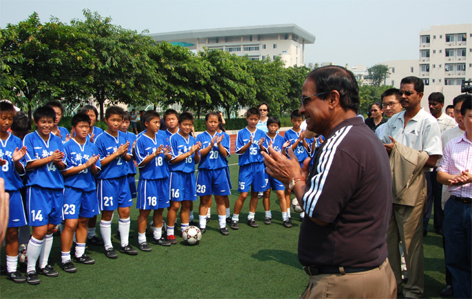 2006年7月28日亚足联秘书长维拉潘观看我校学校足球训练情况