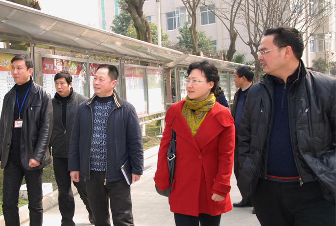 2011年2月23日下午,成都市教育局党组成员、副局长谭学军(右二)在市教育局社管处唐萍处长及双流县教育局党组书记、局长贾兆余(右一)、双流县教育局党组成员、副局长蒋庆书(右三)等领导的陪同下莅临棠外指导工作。