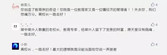 @也许会:“虽然我未见过你 ,但我的两个女儿都在棠外, 大女儿出生那年你建立了棠外,有种失去亲人的感觉,黄校长一路走好!”