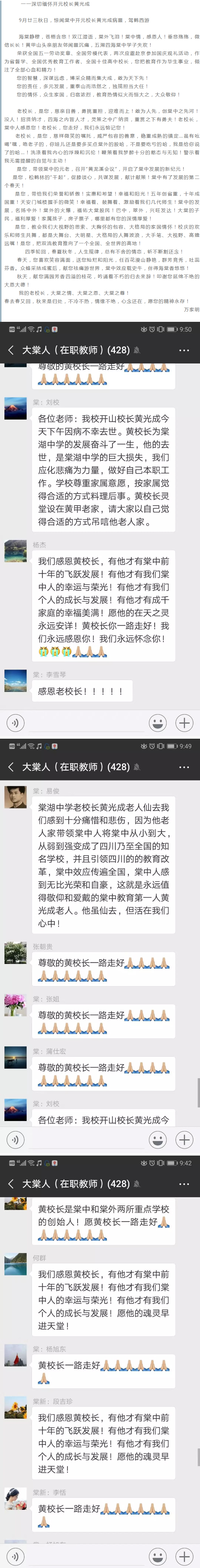 在得知黄光成校长去世的消息之后,众多教育界人士也表达了对这位教育巨匠的哀悼之情。