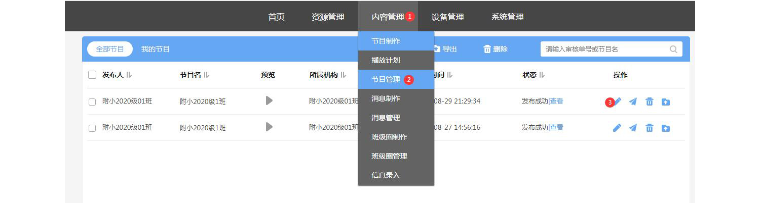 网页登录系统后,点击内容管理-->节目管理-->修改节目,进入节目编辑页面: