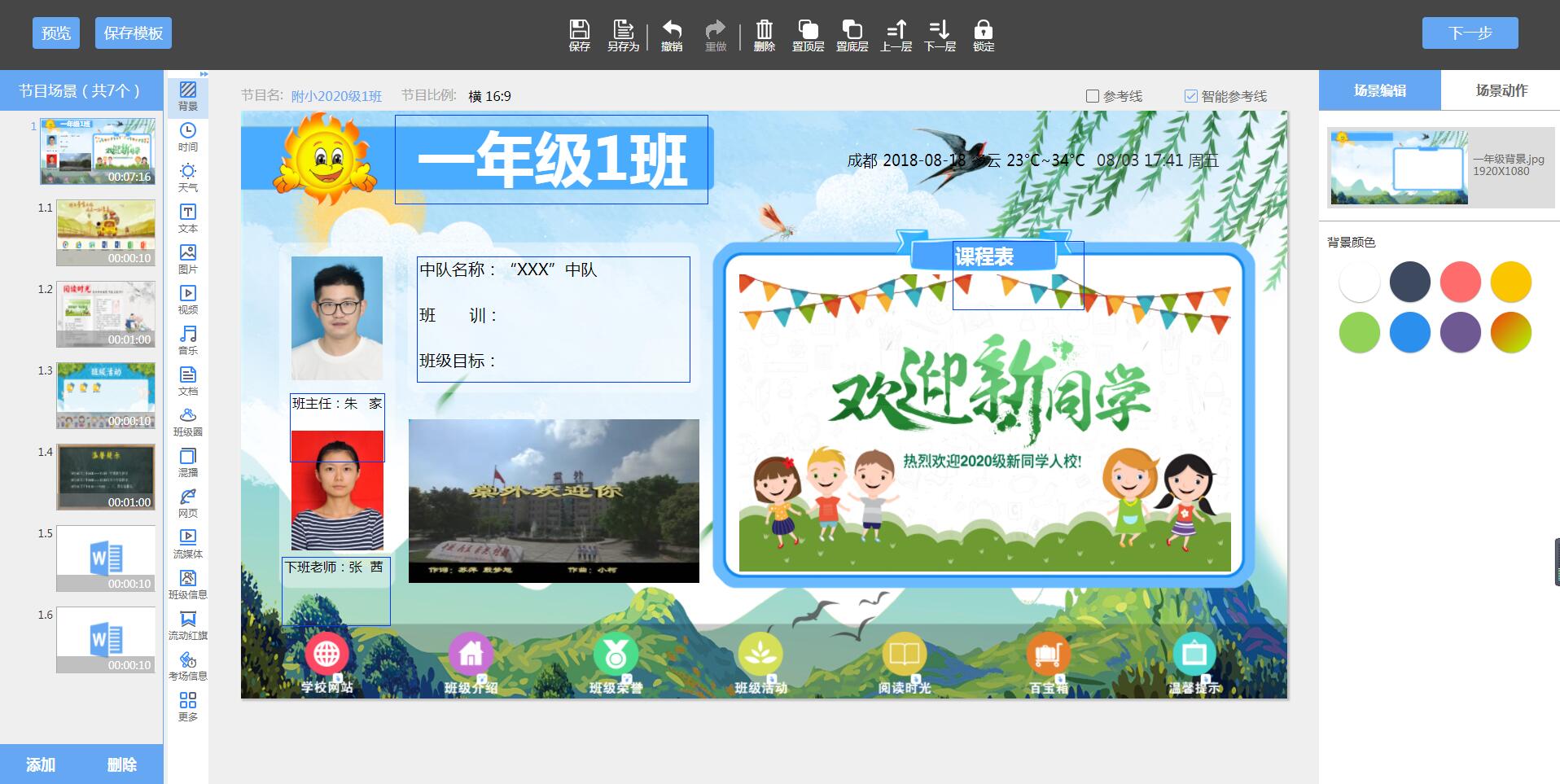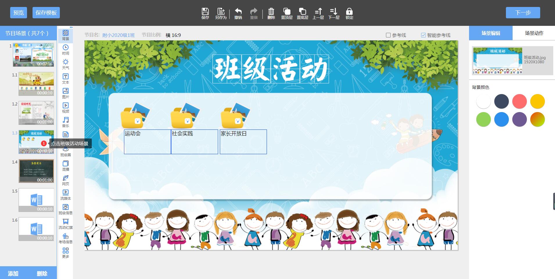在节目编辑页面左侧节目场景处找到班级活动场景并点击。