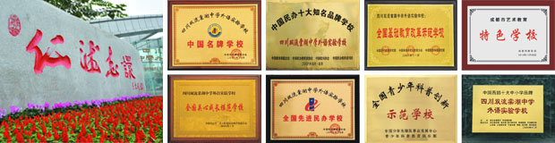 长模范学校”、“全国基础教育改革示范学校”、“中国西部十大中小学品牌学校”、“全国青少年道德培养实验基地”、“最具口碑魅力学校”、“全国特色建设先进学校”、“成都市文明单位”等众多荣誉称号。目前在校学生6000余人,来自包括台湾、香港、浙江、福建、广东在内的22个省市自治区。