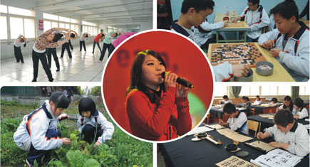 小学的课余兴趣班新颖丰富,多达43门,包括舞蹈、漫画、剪纸、网球、中国象棋、围棋、跆拳道、抖空竹、机器人、种植等校本课程;初中开设了社会观察、种植、摄影、摄像、播音主持、烹饪等46门课程;高中开设了国学课和以学科竞赛为主的校本课程。