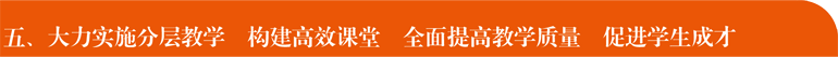 教师树立“不放弃每一个学生”和“让每一个学生都有所进步”的理念,根据学生学习的差异,进行因材施教,大力实施课堂教学改革。所以,我校的教学质量年年受到市县教育局的表彰。
