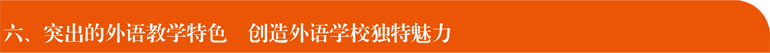 通过两套教材——人教版新目标英语教材和外研社新标准英语教材的同时使用,为学生提供海量阅读及词汇,采用感悟式教学方法,全面提升学生英语水平;打破一般的教学进度,高起点,高标准,使学生的英语能力得到提高。